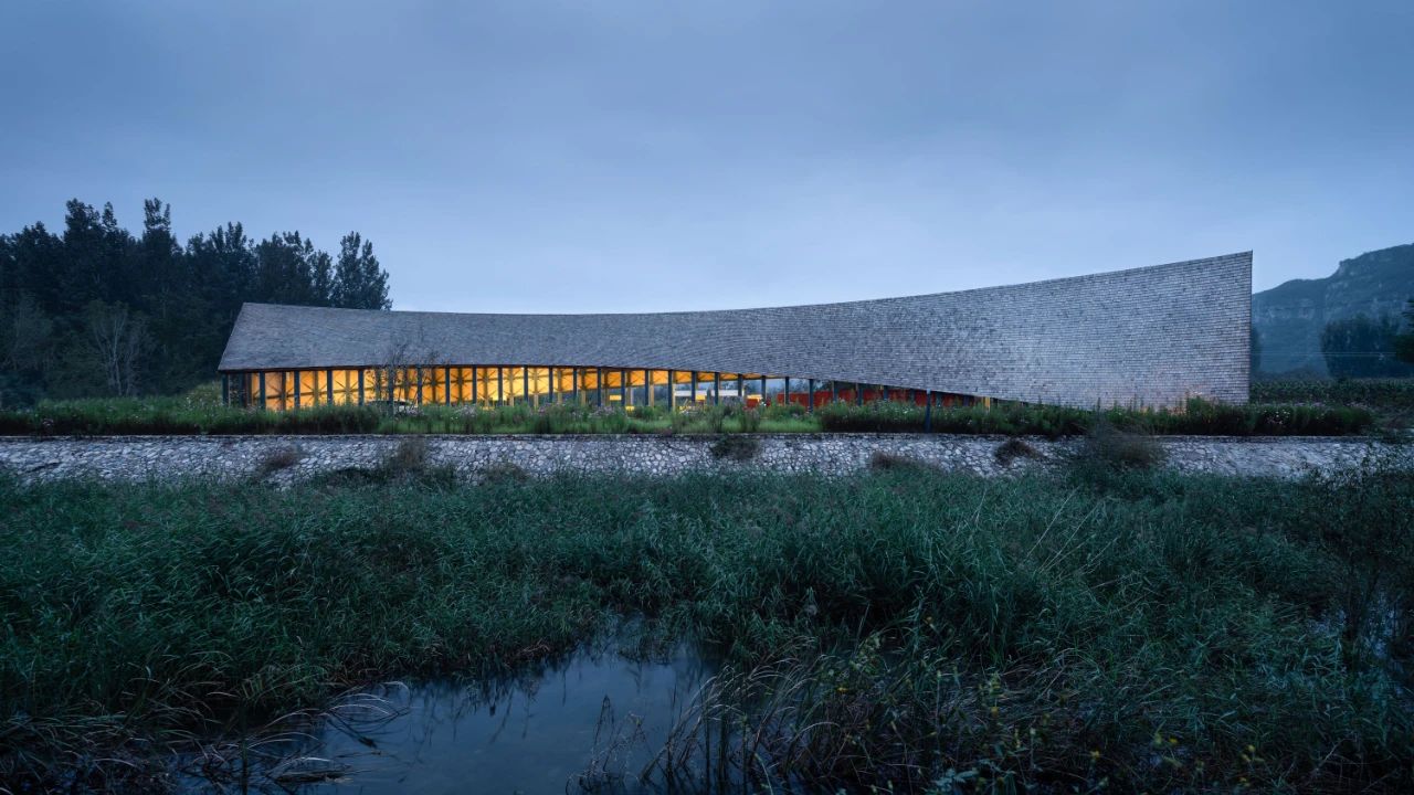 田園大講堂臨河而建,位于居民生活區(qū)和村子的「門(mén)戶」之間,建筑師將其設(shè)定為「講堂」,希望能借此建立外界與村民的連接,并輸出袈藍(lán)在鄉(xiāng)村振興領(lǐng)域經(jīng)過(guò)實(shí)踐驗(yàn)證的價(jià)值觀與方法論,讓村民看到、感知到新設(shè)計(jì)與新產(chǎn)業(yè)能夠帶來(lái)的新未來(lái),展望鄉(xiāng)村自治的可能性。