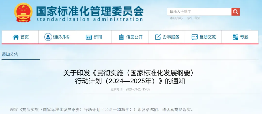 關于印發《貫徹實施〈國家標準化發展綱要〉行動計劃(2024—2025年)》的通知
