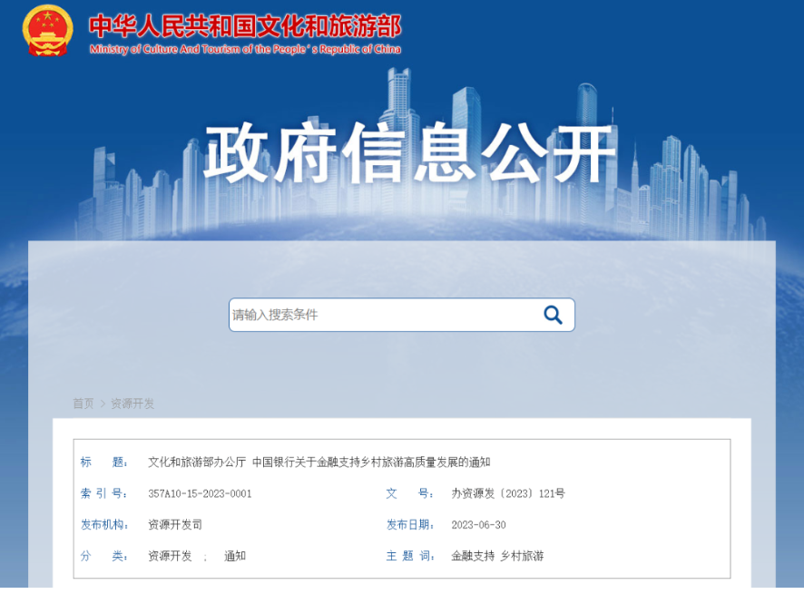 【發文機關】文化和旅游部【發文字號】辦資源發〔2023〕121號【發布時間】2023.06.30