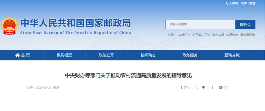 【發文機關】中央財辦、中央農辦、商務部、農業農村部、國家發展改革委、財政部、交通運輸部、市場監管總局、國家郵政局【發文字號】中財辦發〔2023〕7號【發布時間】2023.08.03