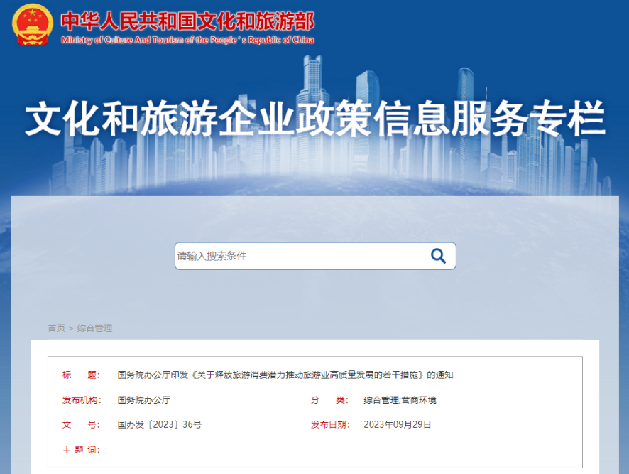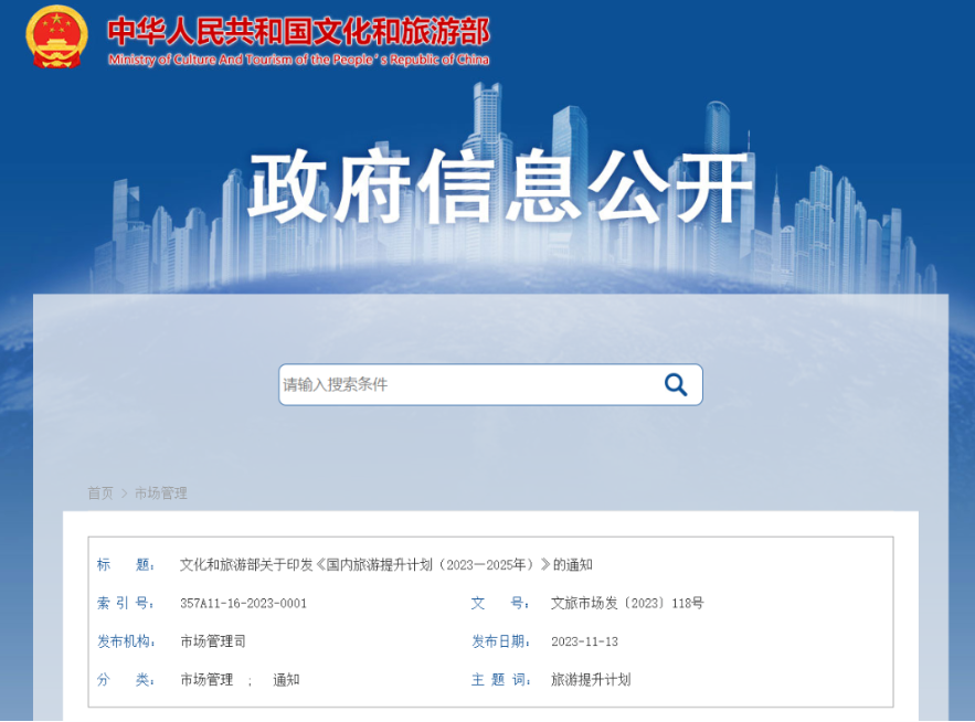 【發文機關】文化和旅游部【發文字號】文旅市場發〔2023〕118號【發布時間】2023.11.13