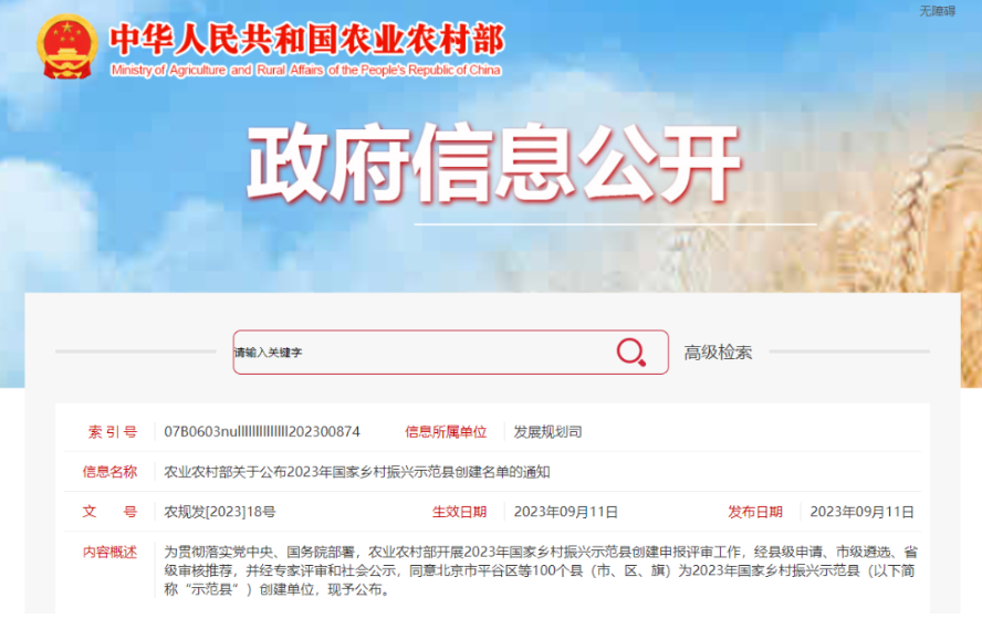 【發文機關】農業農村部【發文字號】農規發[2023]18號【發布時間】2023.09.11