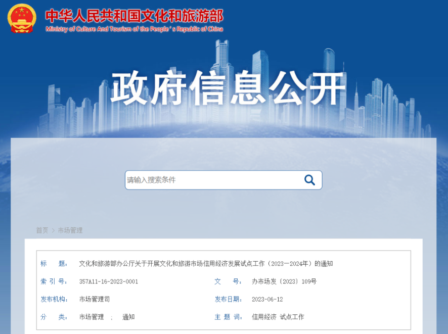 《關于開展文化和旅游市場信用經濟發展試點工作(2023—2024年)的通知》
