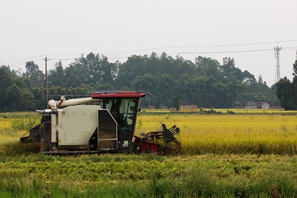 金秋九月,正是農(nóng)忙時(shí)分,在四川“天府糧倉”成都平原地區(qū),一場令人振奮的“豐收之旅”正在逐步進(jìn)入尾聲。只見一臺(tái)接一臺(tái)收割機(jī)斜排成行,收獲的糧食馬上傳送進(jìn)等在田邊的運(yùn)輸車輛,運(yùn)到烘儲(chǔ)中心烘干,顆粒歸倉。