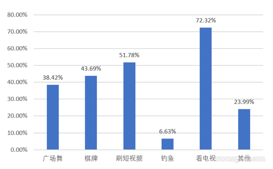 關于鄉村社會文化生活單調匱乏的現狀,從老年人日常的文娛活動形式即可以看出:72.32%的老年人依靠看電視打發時光,同時有51.78%的老年人依靠刷抖音、快手等短視頻度日,很顯然,這兩種娛樂方式都是非常個體化的娛樂方式,尤其是刷短視頻,對于老年人的精神生活,未必是一件好事情。已經有很多相關的研究發現,社交媒體的使用越多,個體的孤獨感和精神健康狀況越差。