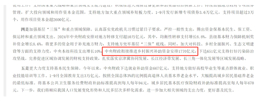 同時,加大對科技、鄉村全面振興、生態文明建設等方面的支持力度,中央本級科技支出增長10%,中央財政銜接推進鄉村振興補助資金安排1770億元,下達651億元支持打好污染防治攻堅戰。