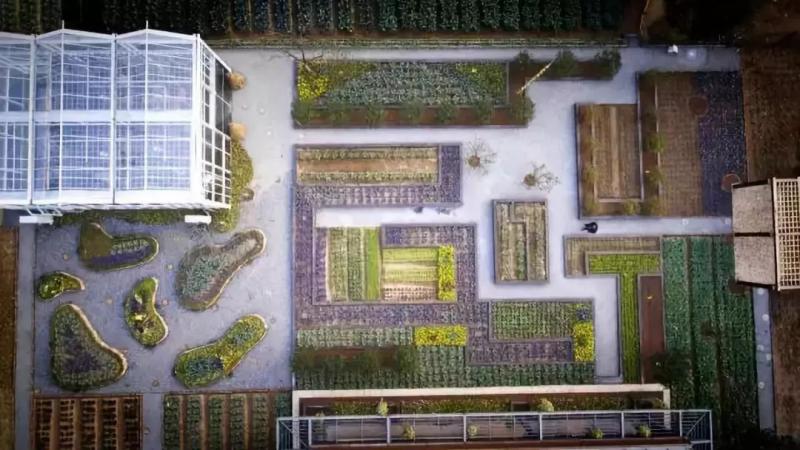 站在巨大的露臺上,憑欄俯瞰,一派田園風光盡收眼底:從腳下的景觀小院,蔬菜花園、迷宮和廊架,老樹下的休憩區(qū),到近處的玻璃暖房、生態(tài)泳池……