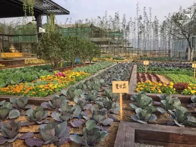 內(nèi)園種植大片紫甘藍和青菜,邊緣雜種鮮花、藍莓,還有專門的蔥蒜韭菜區(qū)、竹筍區(qū)和蜜蜂養(yǎng)殖區(qū),主要用以滿足農(nóng)場主的日常生活。