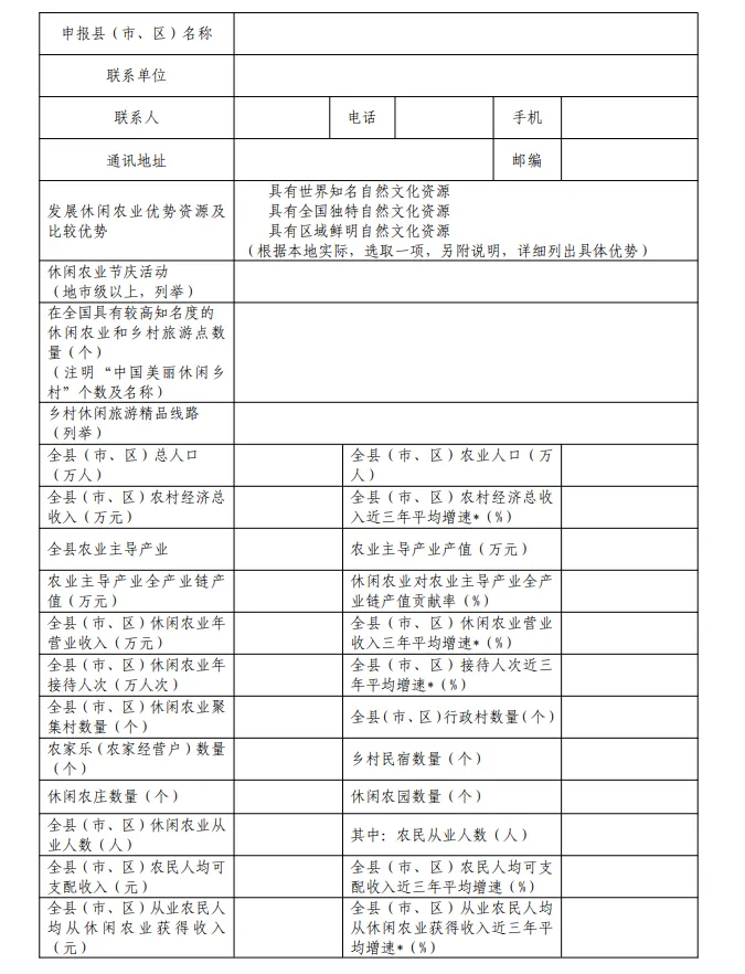 2.《2024年全國休閑農業重點縣申報表》填寫規范性、省縣兩級蓋章。