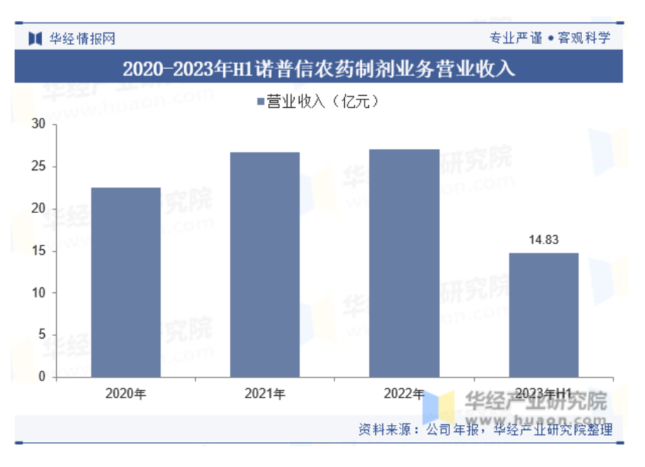 諾普信是一家研產銷環境友好型綠色農藥制劑和植物營養等農業投入品、從事現代特色生鮮消費品經營的國家高新技術企業、行業龍頭企業。2023年上半年,諾普信實現營業總收入25.47億元,較去年同期下降2.98%,其中:農藥制劑業務合并報表營業收入14.83億元,同比下降11.88%。