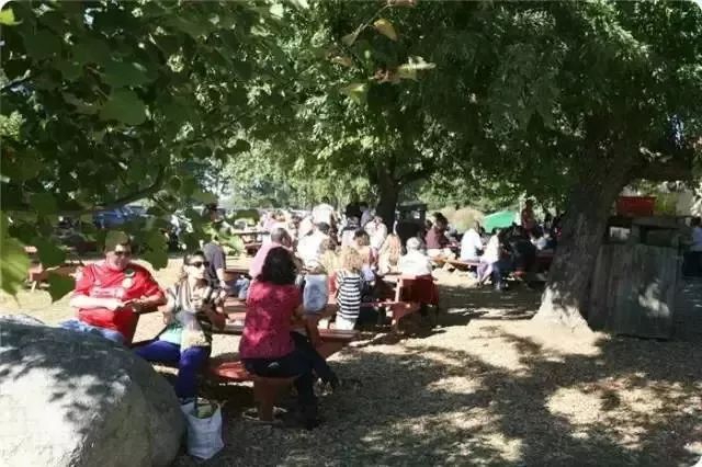 中國休閑觀光農業最差的是缺乏消費環境,采摘就是赤裸裸的采摘,文物古跡就是赤裸裸的祖墳刨開參觀。而美國這家農場的第一個良好的直感是:消費環境占了很大場地。比如,大片的樹蔭下,放置了很多桌椅,供大家休息、交流和享用野餐。