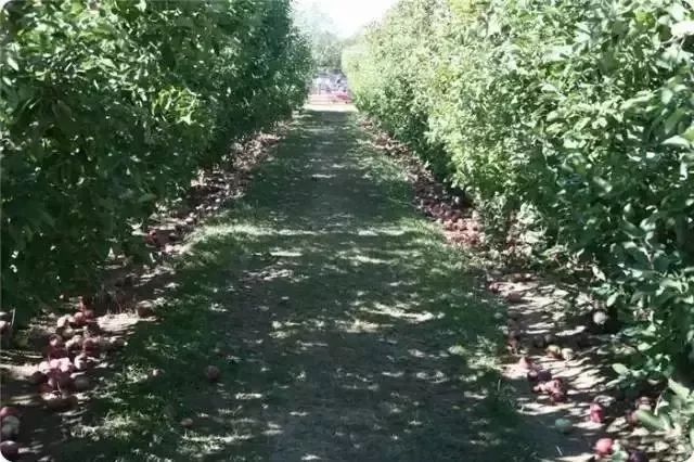 蘋果管護技術高超碩果累累,這種矮化、密植技術及管理理念很超前,而且兩樹之間是耐踩踏的草坪。