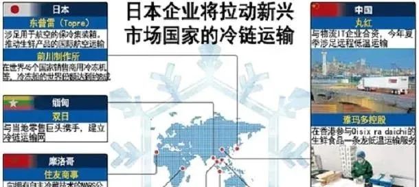 在中等收入階層日趨壯大的新興市場國家,冷鏈運輸正在擴大。能在保持新鮮度的情況下遠程運輸生鮮產品、最后送到消費者手里的網(wǎng)絡無法在一朝一夕建立??梢哉f,冷鏈運輸網(wǎng)需要的先進的溫度管理技術和服務是日本的強項。在今后世界人口增加的背景下,蘊藏著拉動食品基礎設施出口的可能性。