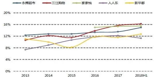 生鮮業務毛利率普遍偏低,不利于渠道和品牌建設。以上市超市為例,生鮮業務毛利率大多在20%以下。其主要原因為:(1)生鮮作為農產品,加價空間有限;(2)生鮮產品同質化嚴重,不同渠道之間主要依靠價格競爭,難以維持高毛利水平;(3)超市將生鮮作為聚客流量入口,會主動控制毛利率,保持價格競爭力。正是因為生鮮業務的低毛利率,大多數企業都無法通過業務盈利,更無法通過業務本身快速積累足夠資本完成品牌和上游渠道建設改造。