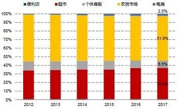 圖2:超市、電商渠道替代農貿市場趨勢明顯