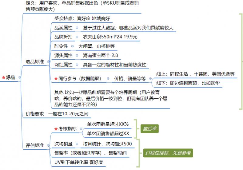 一個品是否能夠成為爆品,不同平臺的考核指標也是不一樣的,像湖北十薈團主要是按照銷售額來考核的,每期團,只要某商品的銷售數據超過5萬(現在標準有沒有改未知),那便稱這個品為爆品。