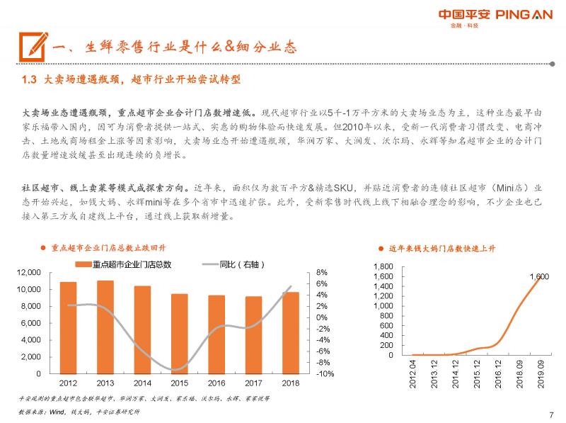 導讀:生鮮零售行業現代渠道占比不足一半,供應鏈&業態變革推動行業發展。