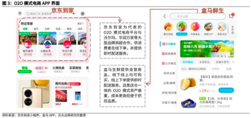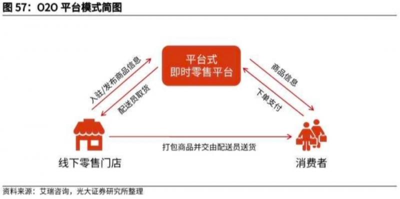 O2O平臺(tái)模式屬于輕資產(chǎn)運(yùn)營(yíng)模式,通過互聯(lián)網(wǎng)平臺(tái)(如京東到家)將線下商超的商品和消費(fèi)者鏈接起來,配送為即時(shí)配送,時(shí)長(zhǎng)約為1小時(shí)。由于平臺(tái)模式可以對(duì)接多家線下超市和門店,包括生鮮水果店、鮮花綠植店、藥店等,商品種類往往更加齊全,滿足消費(fèi)者多品類的消費(fèi)需求。