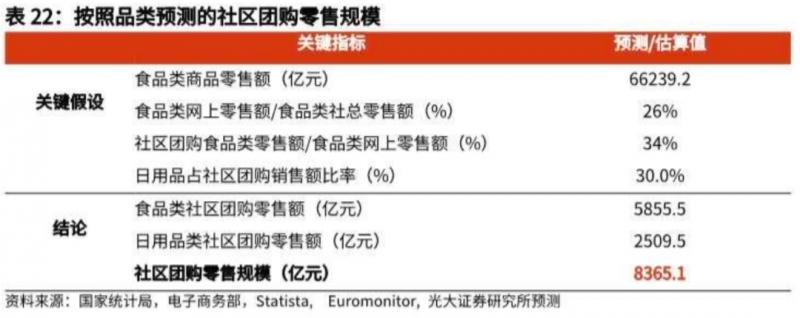 社區(qū)團(tuán)購的核心商品為食品類和日用品類,本質(zhì)為食雜類電商。我們的前提假設(shè)包括: