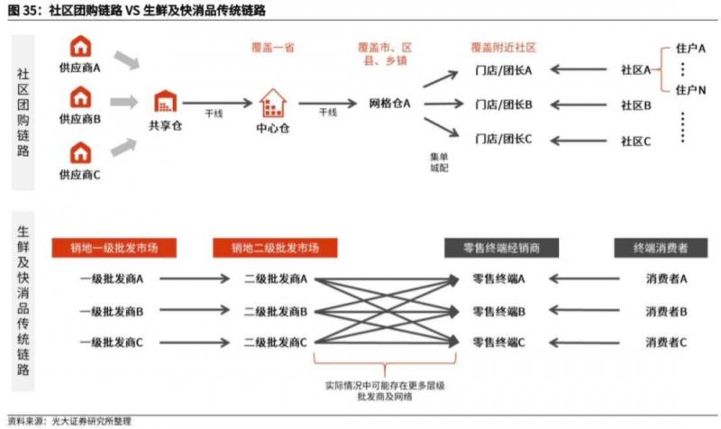 2)社區(qū)團(tuán)購對(duì)傳統(tǒng)生鮮鏈路的取代自銷地以一、二級(jí)批發(fā)市場(chǎng)開始。