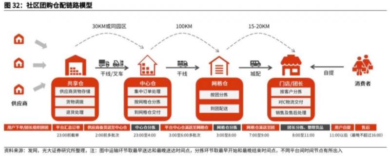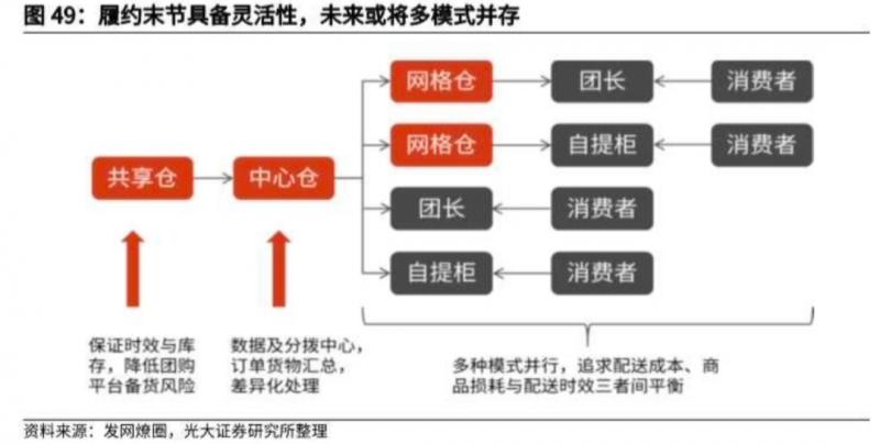3)與傳統(tǒng)分銷渠道不同,社區(qū)團(tuán)購模式下的履約效率提升主要憑借以下幾點(diǎn):