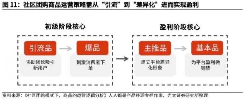 以“引流”為核心到“差異化”為核心,是社區(qū)團(tuán)購電商對(duì)于用戶的培育過程,也是平臺(tái)選品策略需要遵循的規(guī)律。