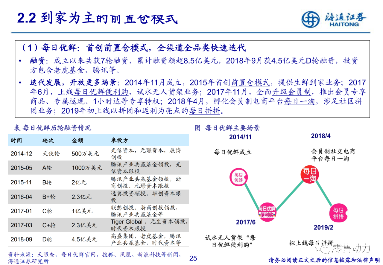 純到家的前置倉電商模式。將前置倉建在社區周邊,配送效率及物業可獲取性高,注重到家體驗、商品品質與 復購率,初期拉新若過度促銷會嚴重損耗毛利率。