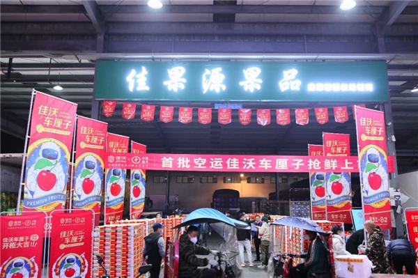 25日上午,佳沃車厘子抵達成都批發市場舉行開柜儀式,還未開柜即吸引了大批聞聲而來的渠道客戶,佳沃車厘子x中國航天聯名款禮盒在市場大受歡迎。