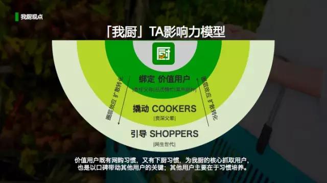 上圖是我廚建立的影響力模型。這個(gè)影響力模型,涉及如何綁定價(jià)值客戶,如何撬動(dòng)資深父輩用戶到平臺(tái)上來,如何引導(dǎo)網(wǎng)生時(shí)代成為新用戶。