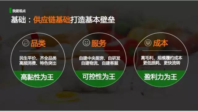 3 . 第三個(gè)坑:沒有勁敵也是個(gè)坑。每日優(yōu)鮮CFO孫原表示,生鮮產(chǎn)業(yè)在原有線下業(yè)態(tài),發(fā)展過程當(dāng)中沒有勁敵,也是生鮮行業(yè)的大坑,因?yàn)闆]有勁敵,所以在戰(zhàn)略上不創(chuàng)新,那么及使戰(zhàn)術(shù)上再勤奮、運(yùn)營(yíng)上再細(xì)致,也不可以彌補(bǔ)戰(zhàn)略不創(chuàng)新這個(gè)坑。