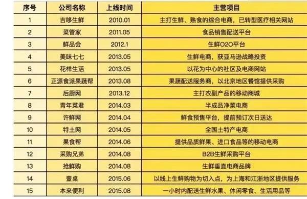 1、生鮮沉浮錄:3年倒閉15家生鮮項目