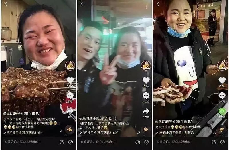 網(wǎng)紅腰子姐就是這樣走紅的。她麻利地在燒烤爐邊給肉串翻面、刷油、灑調(diào)料面。