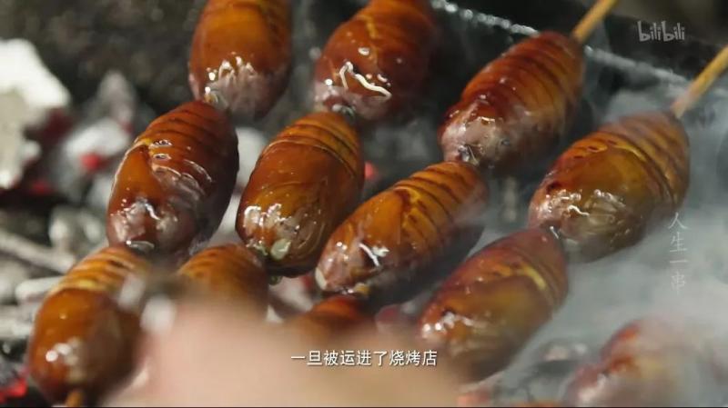 最具有代表性的重口味就是烤蠶蛹。在吉林的遼源,這里的蠶蛹一旦被運(yùn)進(jìn)了燒烤店,就等不到了破蛹的那一天了。