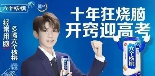 然而,追溯至兩年前,六個核桃便已經洞察到年輕人消費自帶社交屬性和圈層屬性。2018年,六個核桃成功牽手王源,張子棟等流量明星,在抖音、微博、頭條等大流量平臺,展開了“高考季”“開學季”“春節季”等系列主題推廣活動。