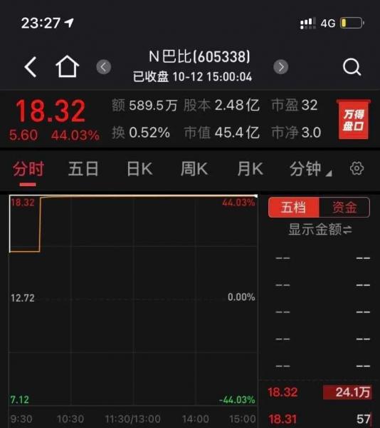 上市首日(12日),巴比食品開盤即迎頂格上漲,截至當日收盤,其股價上漲44%,收于18.32元,總市值達45.4億元。