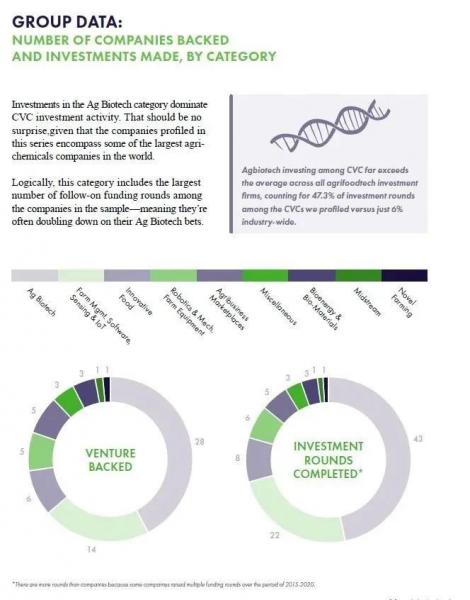 頂級農企的風投部門對生物技術的投資遠遠超過了整體農業食品科技投資者群體的平均水平,占投資輪次的47.3%,而全行業僅占6%。