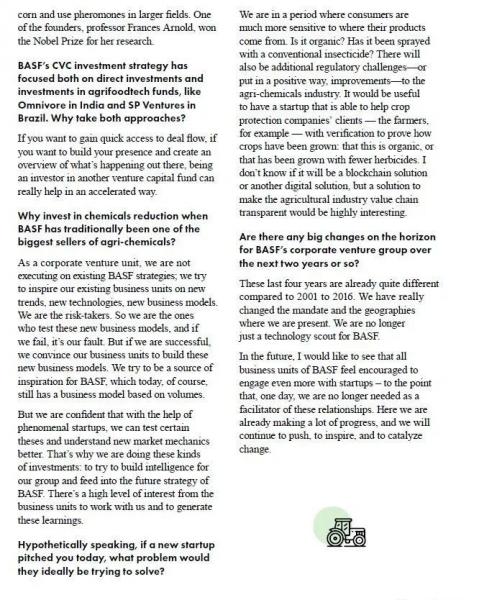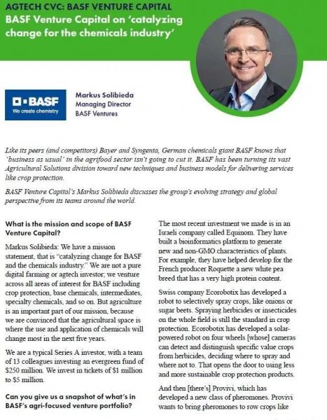 2015年,農業食品科技還是一個新興行業,農業企業并不太關注初創企業。先正達、拜耳和孟山都(后來被拜耳收購)是風投游戲中僅有的幾家大型農化企業。