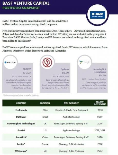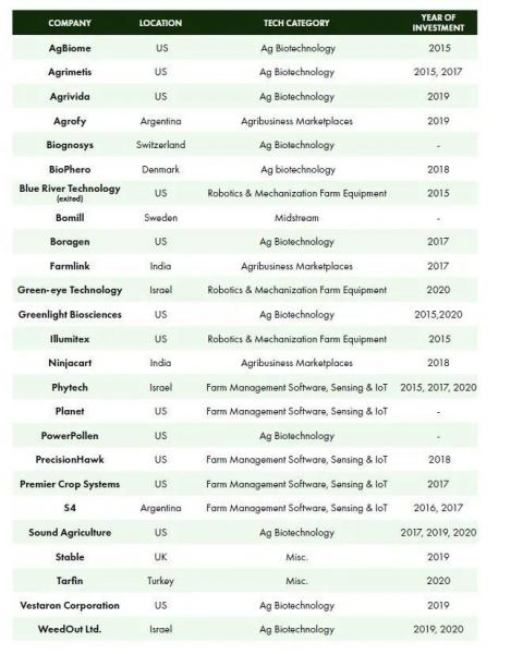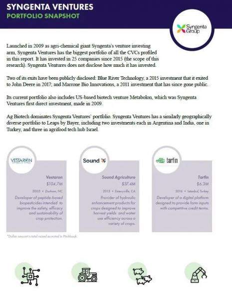 在這六家企業風投活動中,對農業生物技術類別的投資占據了主導地位。這并不令人意外,因為他們代表著世界上最大的農用化學品公司。