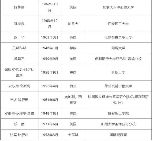 中國工程院2021年當(dāng)選外籍院士名單(共20人)