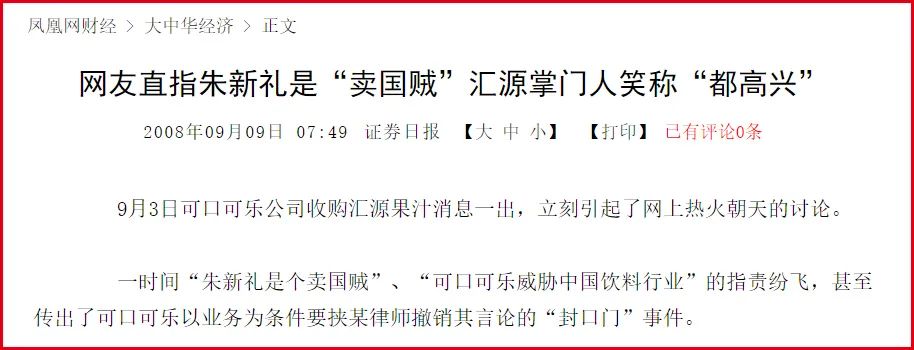 后來,朱新禮在接受采訪時表示,“如果2008年交易成功,我們已是千億級公司了。”但這終究沒有成為現實,事實上,近十年來這個“果汁大王”一路失血。中國食品品牌與外資品牌纏斗,可以說皆有勝敗,但戰事至今不止。