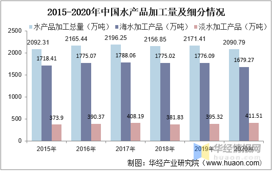 2015-2020年中國水產品加工量及細分情況