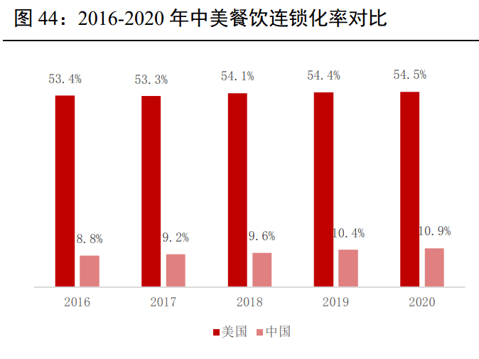 同時預制菜行業已經擺脫初加工產品定位,逐步轉向深加工、高附加值產品。對標美國、日本餐飲連鎖化率分別為54%和 49%,我國連鎖化率和標準化提升空間仍然很大。餐飲企業標準化、規模化、工業化需求,倒逼供應鏈改革,預制菜市場發展可期。
