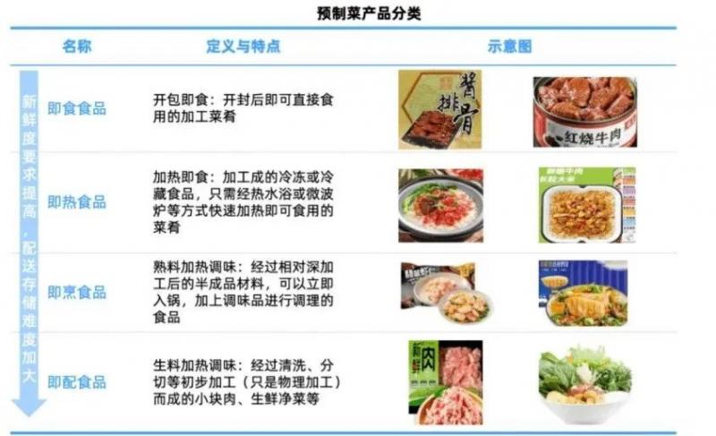 預制菜和傳統速食食品以及速凍食品有本質區別。其發展趨勢是從高利潤、工藝簡單、制作時間長、 二次加熱能保持原味和易儲存的品類,過渡到附加值較高、工藝復雜、新鮮度要求高、較難儲存的品類發展。