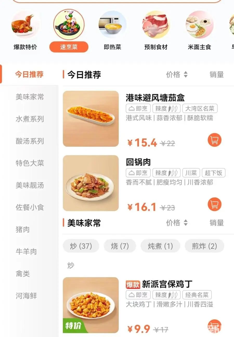 一款知名預制菜品牌小程序內,售賣各類預制菜產品