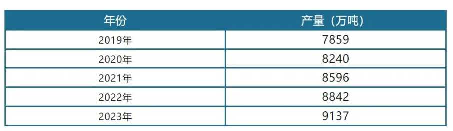 2019-2023年我國白菜類蔬菜產(chǎn)量