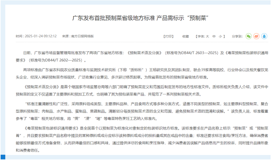 深圳市已將預(yù)制菜地方標(biāo)準(zhǔn)提上日程,2024年起,民進(jìn)廣東省委員會提出建立粵港澳大灣區(qū)標(biāo)準(zhǔn),2025年,深圳市龍華區(qū)政協(xié)委員馬振軍提出建立地方標(biāo)準(zhǔn),規(guī)范預(yù)制菜的術(shù)語與品類,指導(dǎo)行業(yè)良性發(fā)展,為全國性標(biāo)準(zhǔn)提供實(shí)踐參考。在標(biāo)準(zhǔn)制定的過程中,《國民經(jīng)濟(jì)行業(yè)分類》通過同質(zhì)性原則、層級編碼和動態(tài)調(diào)整機(jī)制,為行業(yè)邊界界定提供科學(xué)依據(jù),支撐政策制定、市場分析及國際交流,是地方標(biāo)準(zhǔn)制定的核心工具之一。同時,產(chǎn)業(yè)統(tǒng)計監(jiān)測則有利于規(guī)范企業(yè)經(jīng)營同時,實(shí)時掌握企業(yè)更新動態(tài),精準(zhǔn)定位行業(yè)龍頭,加強(qiáng)政企聯(lián)系,共同推動行業(yè)標(biāo)準(zhǔn)的制定和優(yōu)化。