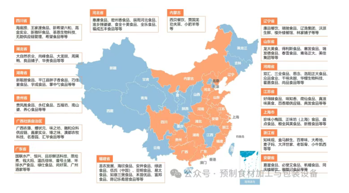 (一)全國預制菜產業鏈代表性企業區域分布圖