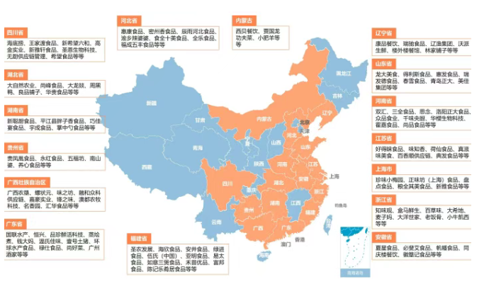 全國預制菜產業鏈代表性企業區域分布圖