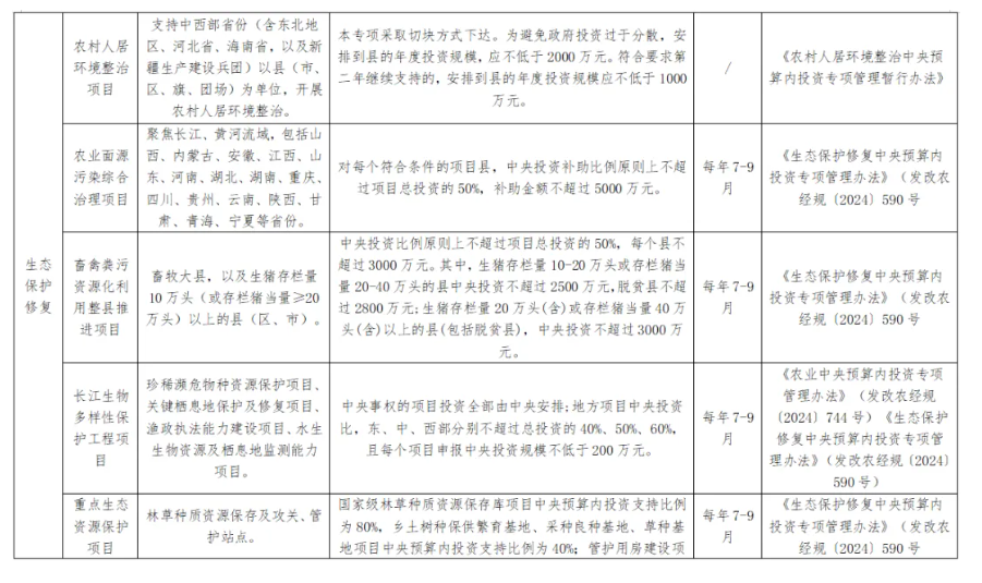 在動植物保護能力提升、農業科技創新能力條件建設、生態保護修復等其他領域,中央預算內資金的投資規模同樣根據項目的具體需求可參考中央預算內資金專項管理辦法中的支持比例而定。這些領域的投資規模可能涵蓋從數百萬到數億元不等的范圍,具體取決于項目的規模、復雜性和重要性。