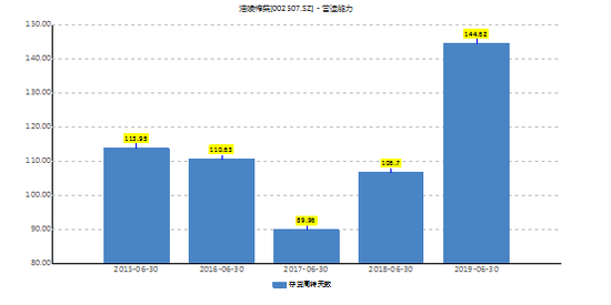 2019年上半年,涪陵榨菜的存貨周轉水平進一步下降,存貨周轉天數高達144.63天。